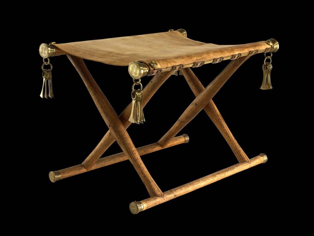 Archäolog*innen haben sich überlegt, wie die Klappstühle ausgesehen haben müssen. Dann haben sie sie nachgebaut. So einen Nachbau zeigen wir euch hier. Weil die Klappstühle mit so kostbarem Metall verziert waren, nehmen Archäolog*innen an, dass nur die Anführer der Menschen in der Bronzezeit diese Stühle besessen haben. Die Stühle waren der Thron der Anführer*innen. Wie bei einem König oder einer Königin. Zur gleichen Zeit, als in Norddeutschland Anführer*innen kostbare Klappstühle hatten, lebten in Ägypten die Pharaonen. Ihr kennt sie oder besser: ihre berühmten Gräber, die Pyramiden. In einigen Gräbern fand man ähnliche mit Gold verzierten Klappstühle wie in der Nähe von Stade.
